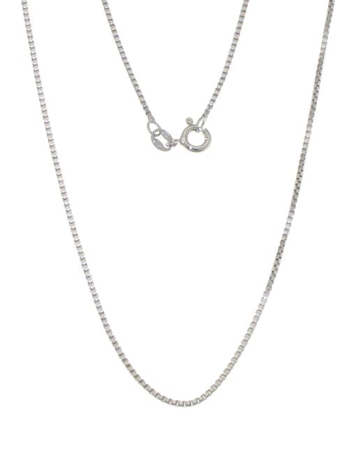 The Sterling Silver 20" Box Chain offers a sleek, modern look with its square links that create a smooth, polished finish.