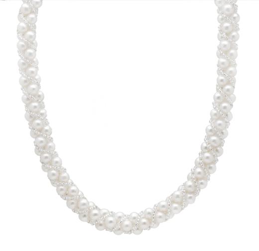 Fancy multi-rows White freshwater pearl necklace, Sterling silver clasp.