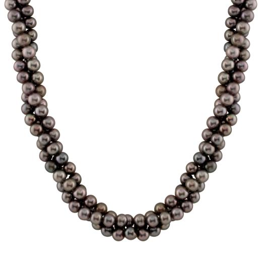 5-6mm 3 rows black potato freshwater pearl necklace, 14k white gold fisheye clasp, 18".