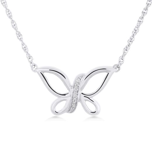 This delicate sterling silver .02ctw butterfly necklace is the perfect gift with a touch of sparkle for her.