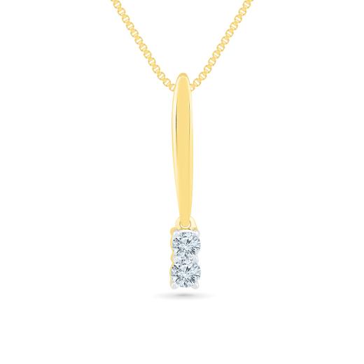 Boost your look with this chic diamond dangle pendant. Crafted in sunny 10kt yellow gold and set with two diamonds totalling 0.18ctw, this pendant sway from an 18" box link chain and the diamonds twinkle with your every movement.