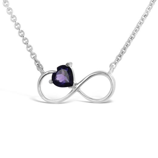 This modern infinity necklace is crafted in lustrous sterling silver and set with a vibrant heart cut genuine amethyst.  Polished to a brilliant shine, this stunning necklace is sure to make a standout addition to any jewellery collection.