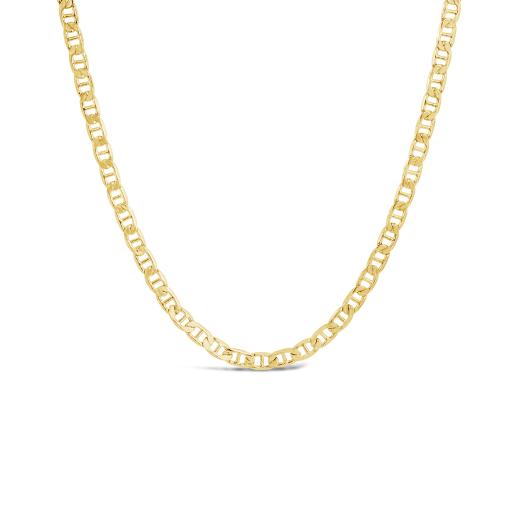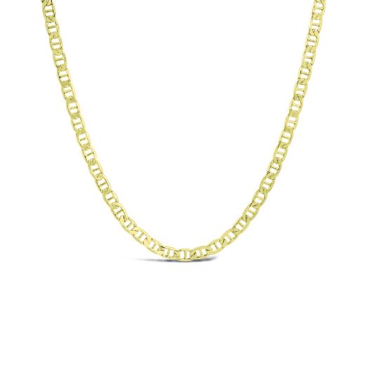 A 10K Yellow Gold Flat Mariner Necklace is a classic and sturdy piece crafted from 10-karat yellow gold. The flat mariner design consists of interlocking flat links, creating a timeless and durable chain suitable for various styles and occasions.