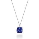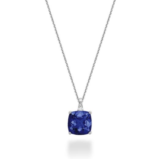 Elegant and enchanting, this 10K white gold pendant showcases a mesmerizing created blue sapphire accented with shimmering diamonds. A captivating piece that adds a pop of colour and sophistication to any ensemble.
