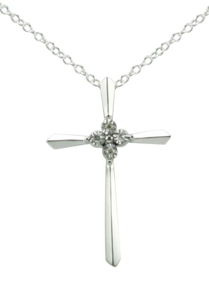 Perfectly petite, this diamond accented sterling silver cross is a lovely way to express your devotion. Suspended from an 18" cable link chain, this cross will be worn close to your heart.