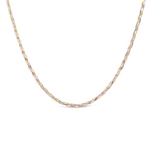Crafted from 10-karat yellow, white, and rose gold, this necklace features three intertwined strands in a beautiful herringbone pattern. The tri-colour combination adds depth and richness to the piece, making it a versatile and timeless accessory. With a length of 16 inches plus a 2-inch extender, this necklace can be adjusted to suit various necklines, ensuring that you shine with enduring beauty and the captivating charm of tri-colour gold.