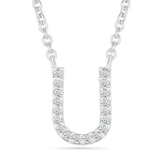 Embrace personal elegance with the Diamond Addiction sterling silver 'U' initial necklace. Adorned with shimmering diamonds, this piece beautifully combines a modern minimalist design with timeless sparkle—a stunning expression of individuality and sophistication.