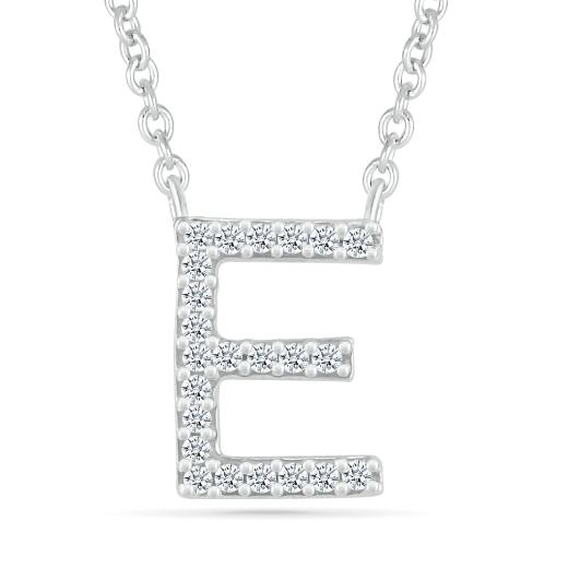 A timeless piece, this Sterling Silver & Diamond "E" Initial Necklace adds a personal touch to any outfit. Sparkling diamonds beautifully accent the elegant silver letter, making it a perfect gift or a meaningful addition to your jewellery collection.