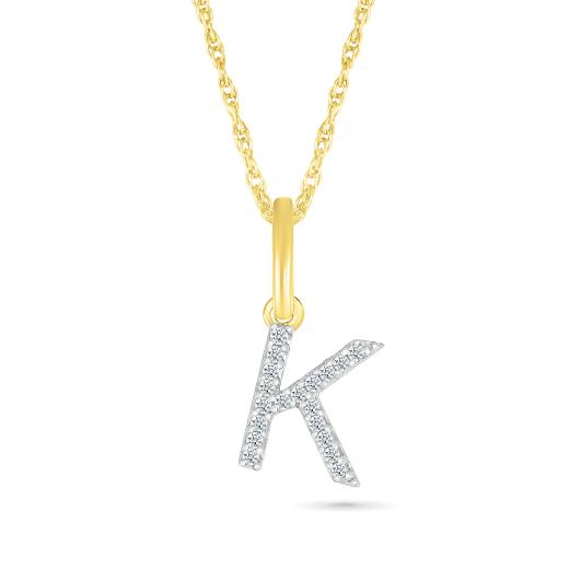 The 10K Yellow Gold & Diamond "K" Initial Pendant is a personalized accessory crafted in 10-karat yellow gold. This pendant showcases the letter "K" adorned with sparkling diamonds, adding elegance and individuality to any outfit. Its stylish design makes it suitable for daily wear or special occasions, offering a touch of personalization and sophistication.