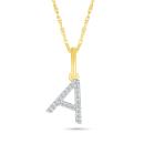 This pendant features the letter "A" in 10K yellow gold, beautifully accented with diamonds that add a touch of sparkle and elegance. The diamonds are carefully set to highlight the richness of the gold and enhance the pendant's shine.