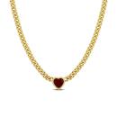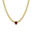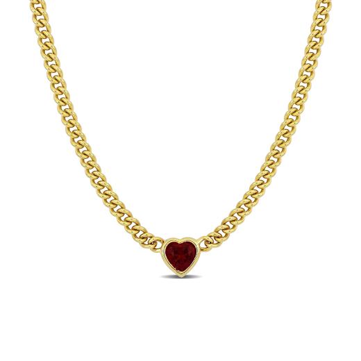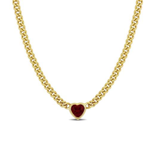 Make yourself feel like royalty with this striking heart necklace. Mounted in luminous yellow plated sterling silver, this dainty necklace showcases a heart-cut created ruby gemstone (8x8mm) at the centre. The stone is suspended on an 18-inch curb link chain and comfortably secured with a lobster claw clasp. Enhanced with a high polished finish, this appealing necklace will always remind her of your deep and profound love.
