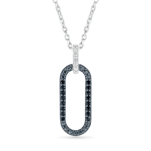 Redefined elegance meets modern sophistication in the Sterling Silver Black Diamond Paperclip Pendant. Crafted in sterling silver and adorned with striking black diamonds, this pendant captivates with its minimalist yet bold design. The sleek lines of the paperclip shape and the intensity of the black diamonds combine to create a contemporary piece that exudes refined luxury and understated charm.