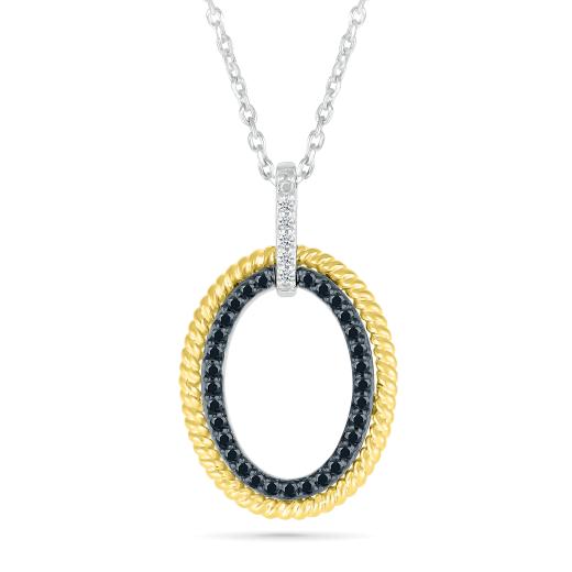 Crafted in sterling silver, this pendant features a captivating circular design intricately detailed with a rope motif and adorned with bold black diamonds totaling 0.18 carats. The fusion of exquisite craftsmanship and the deep hue of the diamonds creates an enchanting piece, a perfect harmony of elegance and intrigue.