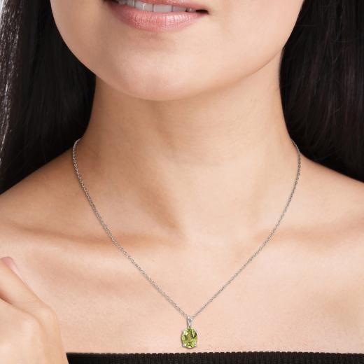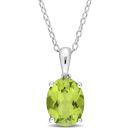 Celebrate the big day with this charming Peridot Solitaire Pendant with Chain. Crafted in luminous sterling silver, this glamorous pendant features an oval-cut, 4 prong-set peridot gemstone (9x7mm) in a classic basket setting. Polished to a brilliant shine, this enchanting pendant is suspended on an 18-inch round cable chain secured with a spring ring clasp. This charming pendant is the perfect combination of class and elegance.