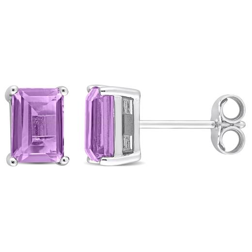Show yourself some love with this charming Amethyst Solitaire Pendant with Chain. Crafted in lustrous sterling silver, this mesmerizing pendant features an emerald-cut, 4 prong-set amethyst gemstone (7x5mm) in a classic basket setting. Polished to a brilliant shine, this flawless pendant is suspended on an 18-inch round cable chain secured with a spring ring clasp. A timeless accessory worth investing in.