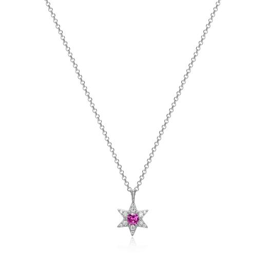A dazzling celestial beauty, the Reign Pink Sapphire Star Necklace features a vibrant pink sapphire set within a star-shaped design. Its radiant colour and sparkling allure make it the perfect piece to add a touch of elegance and whimsy to any outfit.