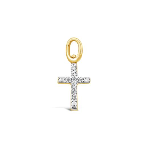 Elevate your spiritual style with our 10K yellow gold cross charm, adorned with exquisite diamonds. Designed for seamless mixing and matching, this versatile charm allows you to create a unique and meaningful jewellery collection. Pair it with our matching Charmables cross earrings to make a graceful statement of faith and elegance in any outfit.