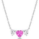 Elevate your style with our enchanting 2 5/8 CT TGW Created Pink Sapphire Triple-Heart Necklace in Sterling Silver. This exquisite necklace features a trio of hearts adorned with a total of 2.625 carats of created pink sapphires, arranged in a captivating and romantic design.Set in sterling silver, the necklace combines timeless elegance with a touch of modern flair. The delicate and feminine design makes it a perfect accessory for adding a touch of glamour to both casual and formal outfits.Celebrate love and beauty with our Created Pink Sapphire Triple-Heart Necklace. This piece is a symbol of sophistication and a radiant addition to any jewelry collection.