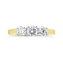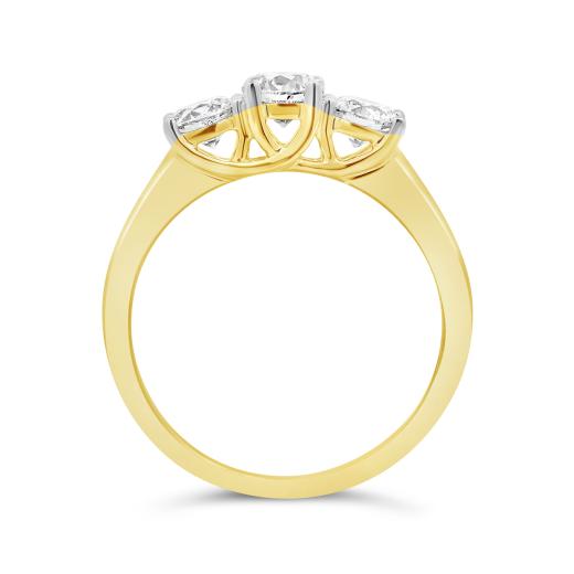 This stunning anniversary ring showcases a timeless design with three brilliant diamonds, totaling 1.00CTW, set in a classic yellow gold band. The three stones symbolize the past, present, and future, making it a perfect choice to celebrate lasting love. Each diamond is carefully selected for its clarity and brilliance, and the warm yellow gold setting enhances their sparkle, offering a luxurious and refined look.