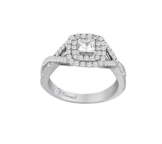 Get mesmerized by the curves of this flawless engagement ring. Crafted in a decadent 14-karat white gold, the diamond encrusted shoulders meander their way to the piece de resistance, a striking Charmed by Richard Calder diamond at its centre. Part of the Charmed by Richard Calder collection, it is heightened by a delicate Canadian Diamond embedded on the interior of the ring.