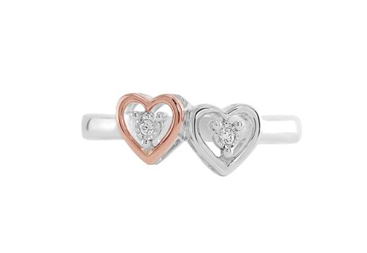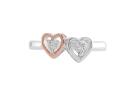 Show her your love with the promise of forever. The perfect symbol of your love for one another is represented with this double heart ring featuring a centre diamond set inside a rose gold and sterling silver heart.