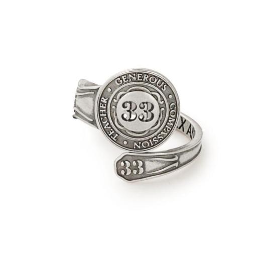 The unique spoon ring design offers a timeless, elegant look while the engraved number 33 serves as a constant reminder of your higher calling and nurturing energy. This adjustable ring fits comfortably, making it a perfect accessory for those who embrace their role as a guide, teacher, and source of love and inspiration.