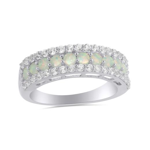 Add a splash of iridescence to your look with this pretty sterling silver opal ring accented with created white sapphires.
