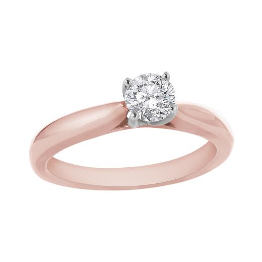Serenade her with this timeless solitaire engagement ring. Crafted in a captivating 14-karat Rose Gold, its polished surface and subtle pink exterior further enhances the exceptional sparkle from the brilliant cut .50 carat diamond.