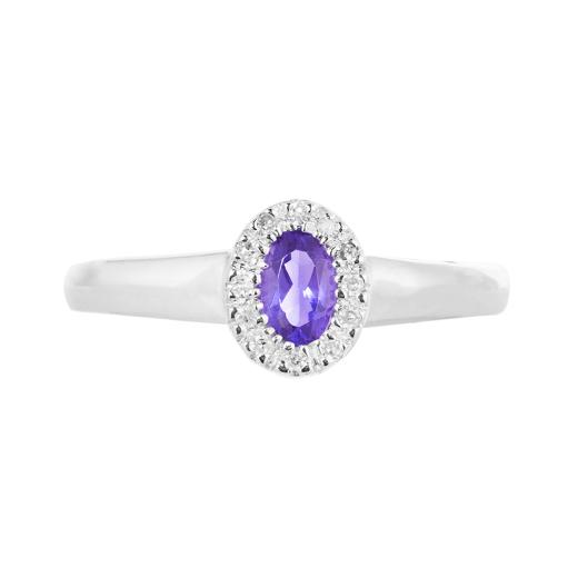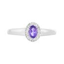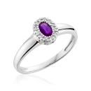 This classic halo ring is crafted in lustrous white gold and features an oval cut amethyst at its centre surrounded by shimmering diamonds. This ring is sure to add a touch of elegance to any ensemble. A perfect gift for a February-birthday in your life!