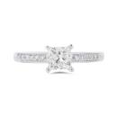 Make her feel like royalty with this chic Princess cut ring. Crafted in 14-karat white gold and completed with diamond set shoulders, this diamond ring is sure to rule.
