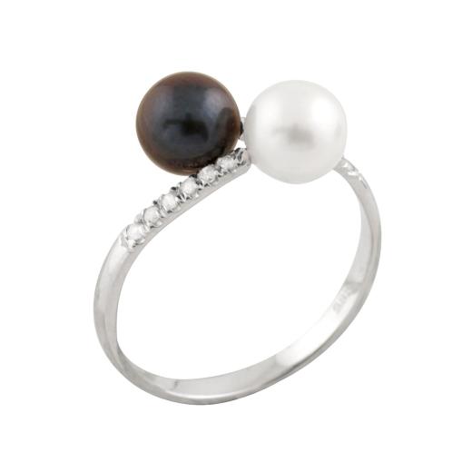 This elegant ring combines the timeless beauty of pearls with the brilliance of diamonds, making it a sophisticated piece for special occasions.