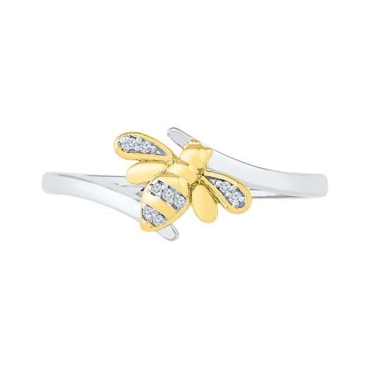 This charming 10k yellow gold and sterling silver bee ring will have you buzzing with delight. Featuring dazzling diamond accents and inspired by nature, the bee collection is both sweet and sparkly.
