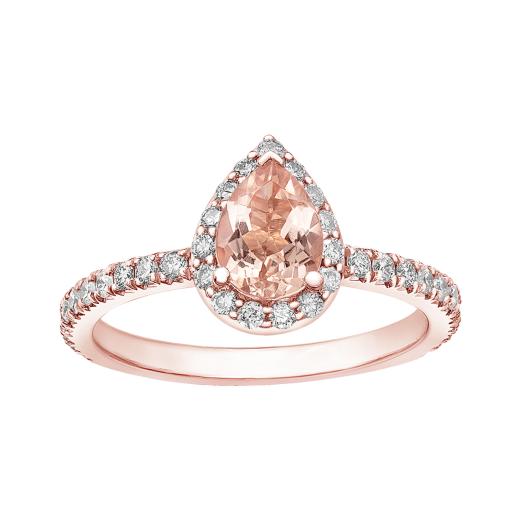 Crafted from 10-karat rose gold, this ring exudes warmth and femininity. The soft and romantic hue of rose gold complements the morganite and diamonds, creating a harmonious and enchanting combination.
