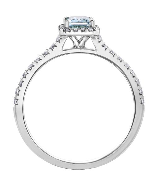 Surrounding the aquamarine are diamonds with a total carat weight of 0.25 carats. These diamonds add brilliance and sparkle to the ring, enhancing its overall beauty and creating a captivating contrast with the aquamarine.