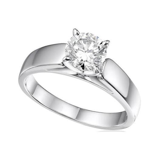 The band of the ring is crafted from 14-karat white gold, which provides a sleek and sophisticated backdrop for the diamond. White gold complements the diamond's brilliance and adds a touch of elegance to the overall design.