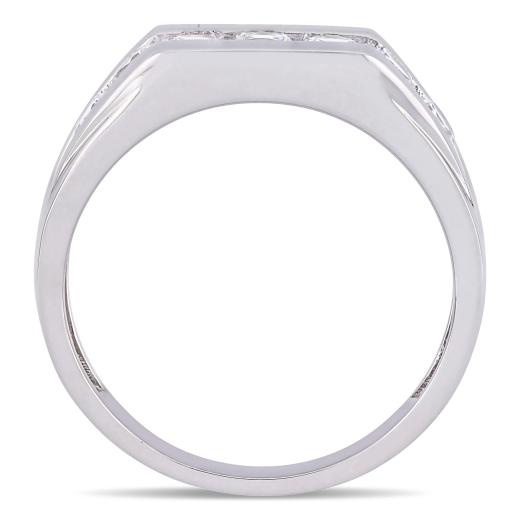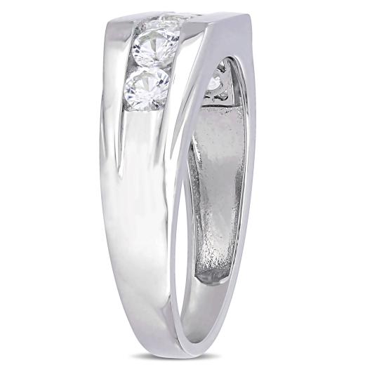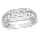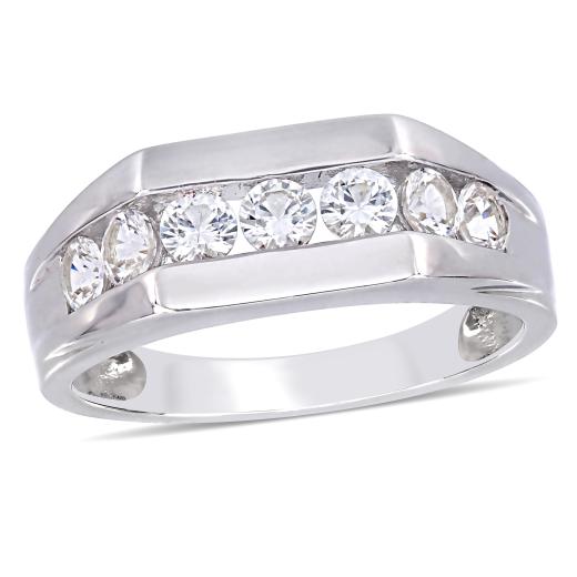 This stunning ring features a row of 7 round-cut Created white sapphires set along the band. This ring is crafted of sterling silver and is enhanced with a high polish finish.