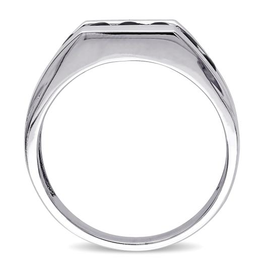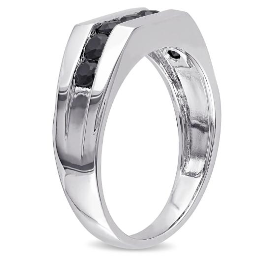 This attractive men's ring features round-cut black sapphire stones set in sterling silver. This extraordinary ring is enhanced with a high polish finish.
