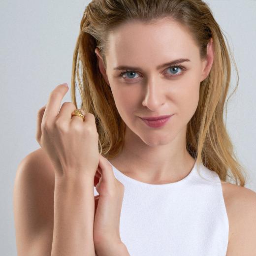 The Ania Haie Emblem Adjustable Signet Ring is a striking statement of individuality and classic elegance. With its sleek design and adjustable fit, this ring exudes a sense of strength and sophistication. The engraved emblem adds a touch of personalization, symbolizing power and purpose, making it a perfect accessory for those who want to express their unique style.