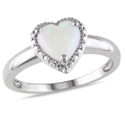 This stunning heart ring from the Collection features a heart-cut opal stone in the center. This lovely ring is crafted of fine sterling silver with a high polish finish.