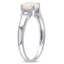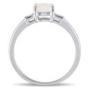 This pretty cocktail ring from the Collection features a cushion cabochon-cut opal center stone flanked by two round white diamonds. This gorgeous ring is set in sterling silver and is enhanced with a miligrain finish.