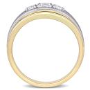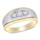 This unique two-tone created white sapphire band from the Collection is crafted in lustrous 10-karat yellow and White Gold and features three round-cut, prong-set created white sapphires at the center of its trendsetting double band design. Choose this gemstone ring as a perfect choice for that classy and sophisticated man in your life.