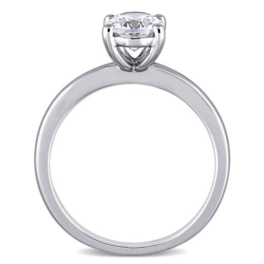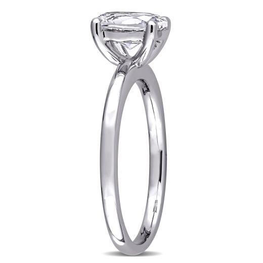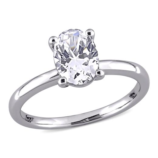 Show off your wardrobe when you wear this marvelous Created White Sapphire Solitaire Engagement Ring. Mounted in lustrous white gold, this beautiful ring showcases an oval-cut, prong-set created white sapphire gemstone (9 x 7mm) at the center forming a solitaire style. Slip this exquisite gemstone ring on your finger and fall in love with its delicate beauty and sparkling brilliance. Enhanced with a high polish finish, this gemstone engagement ring is sure to be a valuable addition to any jewelry collection.