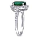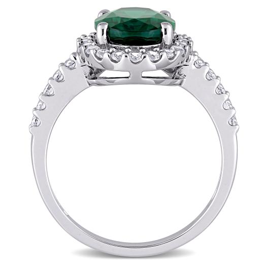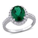 Radiate your feminine glow with this elegant Created Emerald and Created White Sapphire Halo Ring. Mounted in lustrous white gold, it features an oval-cut, prong-set created emerald gemstone (10 x 8mm) at the center with 30 round-cut, buttercup-set created white sapphire gemstones forming a halo and studded along the band. Enhanced with a high polish finish, this gemstone halo ring makes the perfect addition to any jewelry collection.