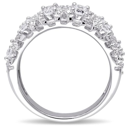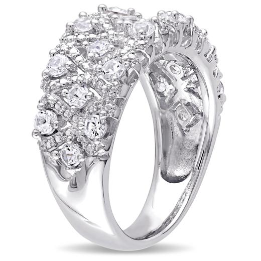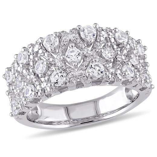 This brilliant ring features round-cut created white sapphires. The ring is crafted of fine sterling silver with a high polish finish.