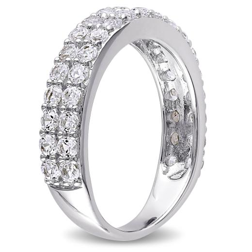 This attractive ring features round-cut created white sapphire stones set in sterling silver. Ring glimmers with highly polish finish.