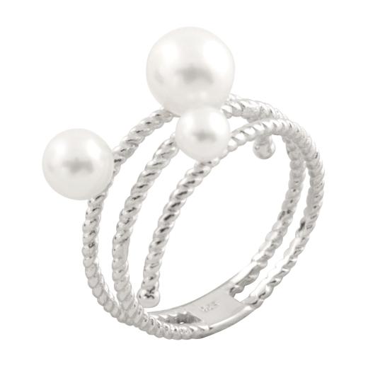 A 4-7mm triple white freshwater pearl ring in sterling silver rhodium plated