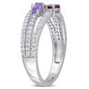 Show off your style with this charming Sky Blue Topaz, Amethyst, Garnet, and White Topaz Triple Row Ring. Crafted in sterling silver, this beautiful three-stone design features a baguette-cut, prong-set amethyst, garnet and sky blue topaz gemstone (4 x 2mm). Additionally, 73 round-cut, buttercup-set white topaz gemstones (1 x 1mm) adorn the three rows of this ring. Enhanced with a high polish finish, this gemstone fashion ring brings the elegance to any attire.