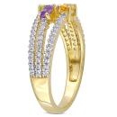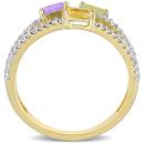 Make your day extra special with this striking Citrine, Peridot, Amethyst and White Topaz Triple Row Ring. Crafted in yellow rhodium-plated sterling silver, this beautiful three-stone design features a baguette-cut, prong-set amethyst, peridot and citrine gemstone (4 x 2mm). Additionally, 73 round-cut, buttercup-set white topaz gemstones (1 x 1mm) rest along the ring's three rows. Enhanced with a high polish finish, this intriguing gemstone design is sure to be a jewelry box favorite.