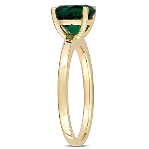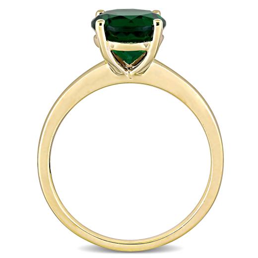 This exotic solitaire promise ring is crafted in 10-karat yellow gold and features a round-cut, prong-set created emerald at the center. This ring has a high polish finish and is a valuable addition to any jewellery collection. Gift her this gorgeous ring and say I Love You and make her occasion more special.