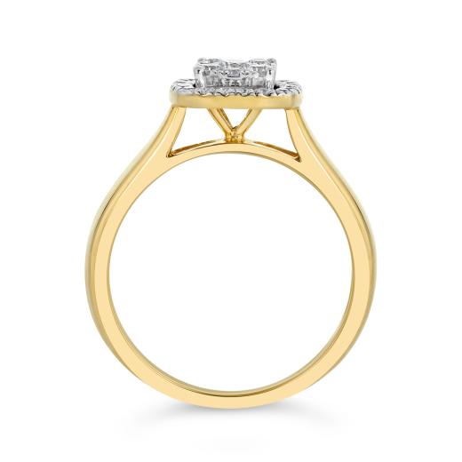 The combination of yellow and white gold in this three-piece bridal set offers a unique and eye-catching design. The contrast between the two gold colours adds visual interest and creates a modern yet timeless aesthetic.
